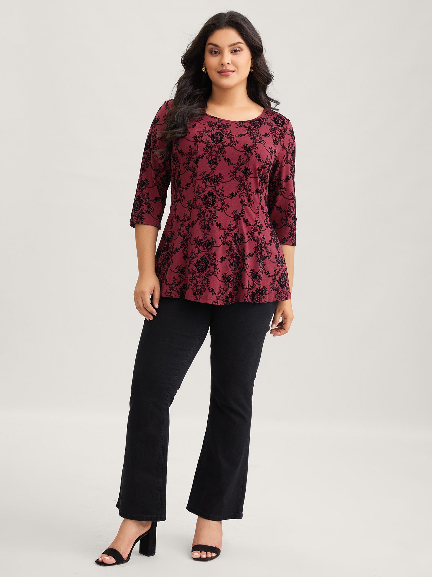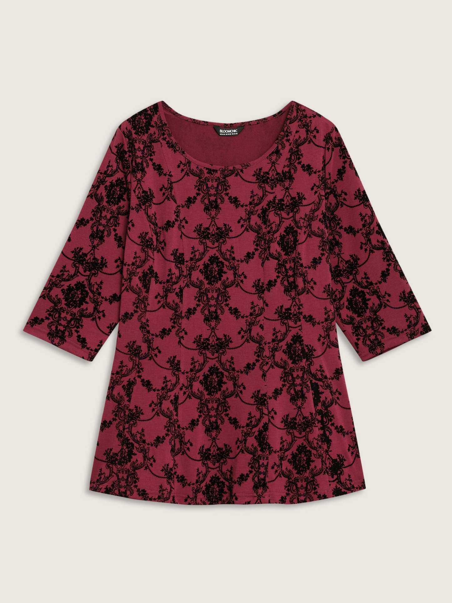 Shop Boho Print Flocking Knit Slim-Fit Top at BloomChic. Plus Size Clothing & Plus Size Jersey Tops. BloomChic is a digital-first fashion and lifestyle destination for modern women sizes 10-30.