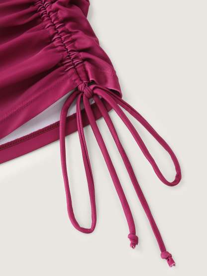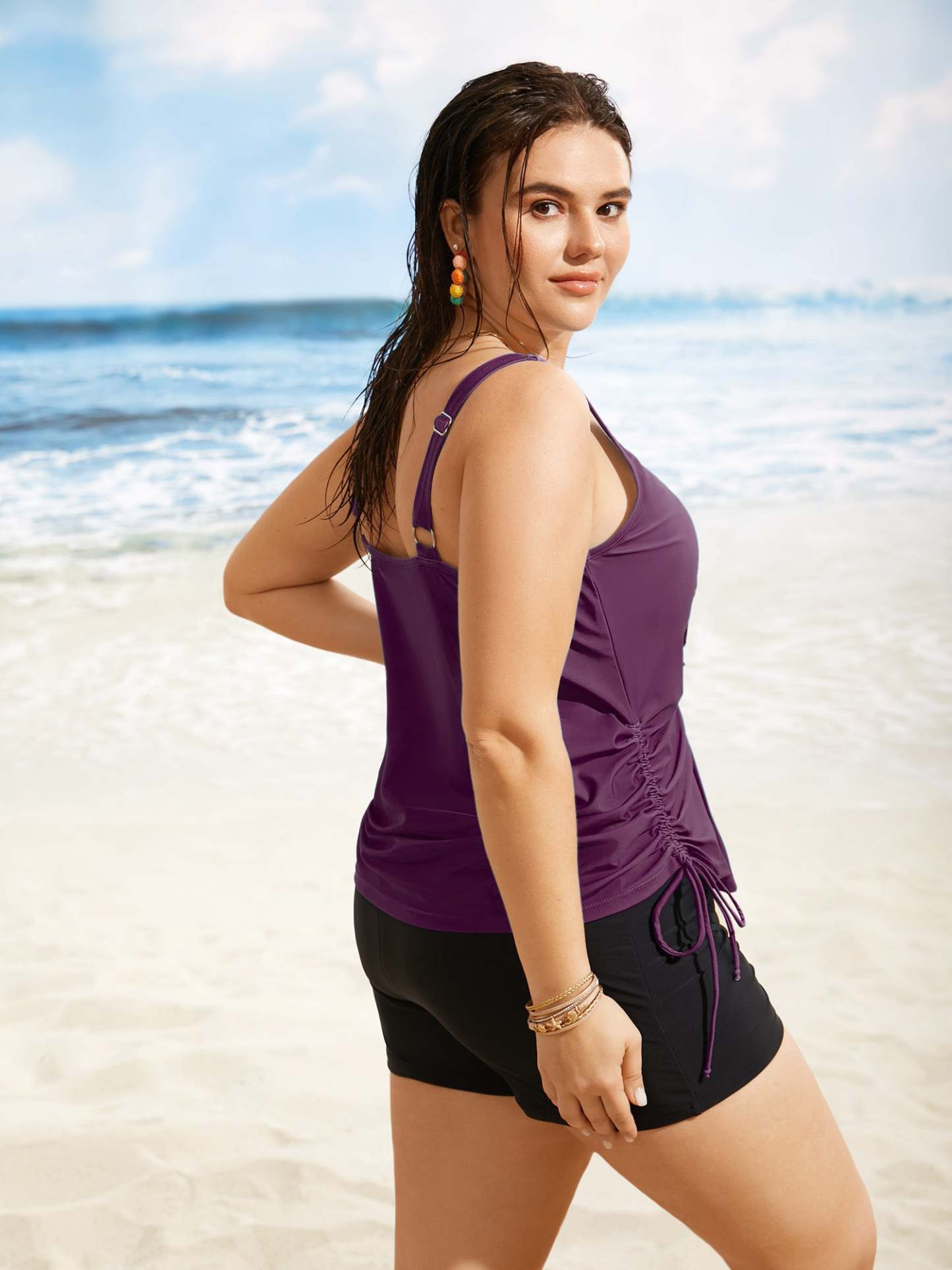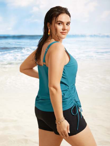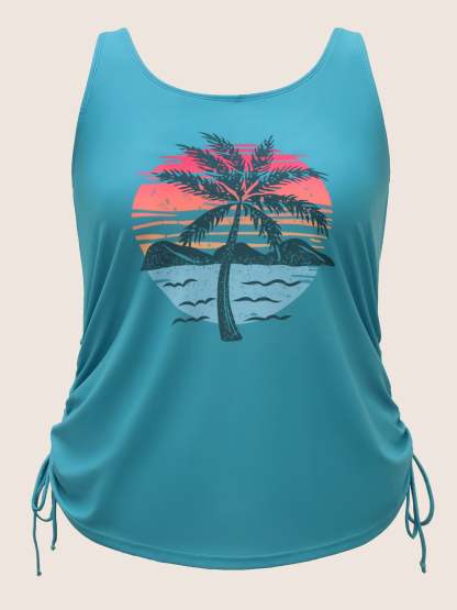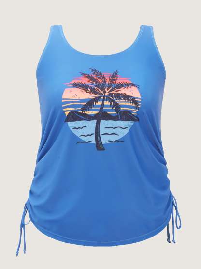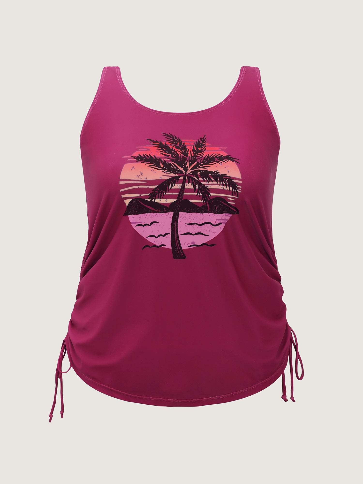 Shop Island Print Drawstring Adjustable Swim Top now and redefine your style with confidence at BloomChic. Tailored for mid and plus-size women. This trendy Swimwear Women, sizes 10-30. Color:Teal, Black, Indigo, Emerald, Eggplant, Mauve, Army Green, Midnight, Rosered, Sky Blue, Lilac;Style:Resort Vacation;Cup Type:Fixed cups;Pattern Type:Tropical;Prints:Landscape pattern;Details:Drawstring, Contrast;Pocket:No-pocket;Belt:No-belt;Chest pad:Non-removable padding