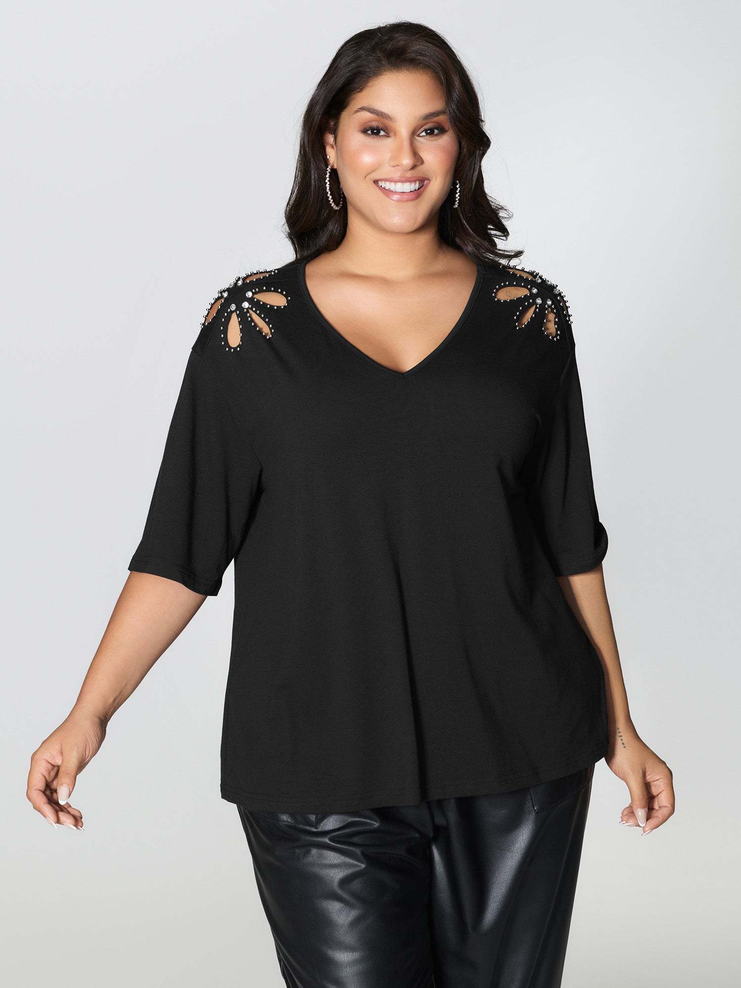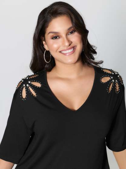 Shop Cut-Out Shoulder Beads T-Shirt at BloomChic. Plus Size Clothing & Plus Size T-shirts. BloomChic is a digital-first fashion and lifestyle destination for modern women sizes 10-30.