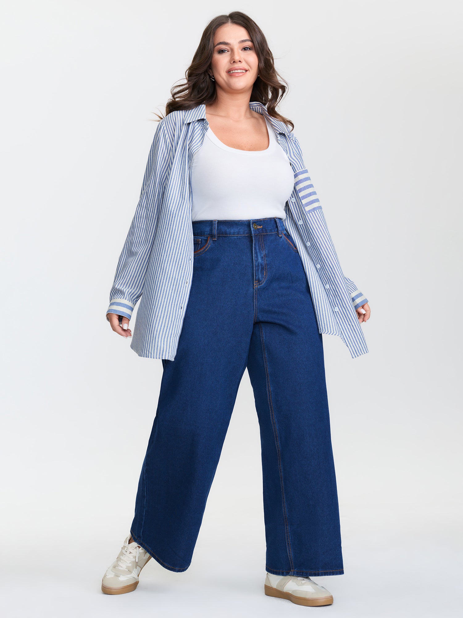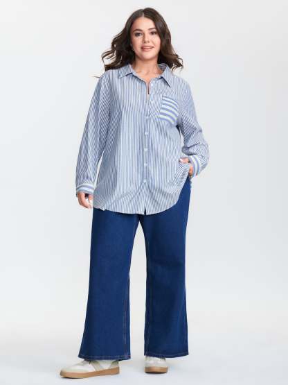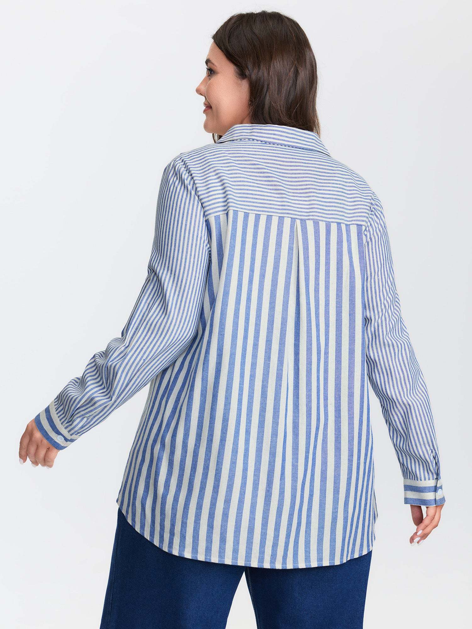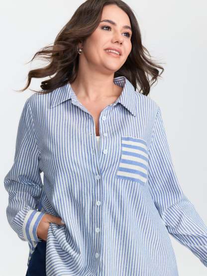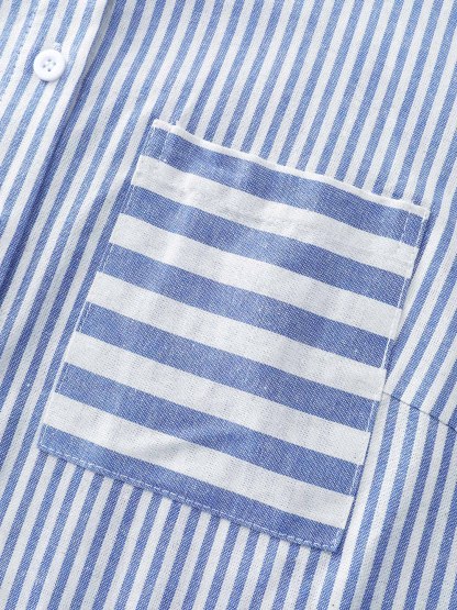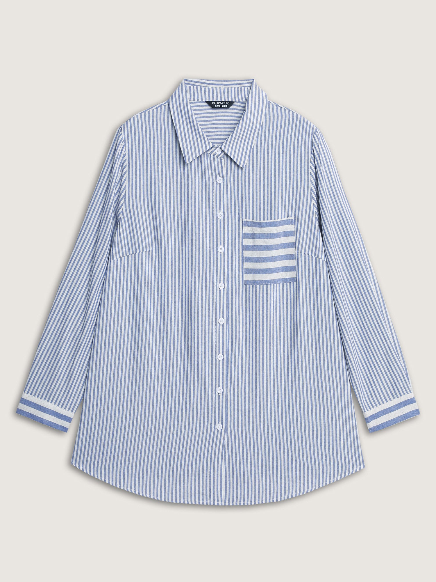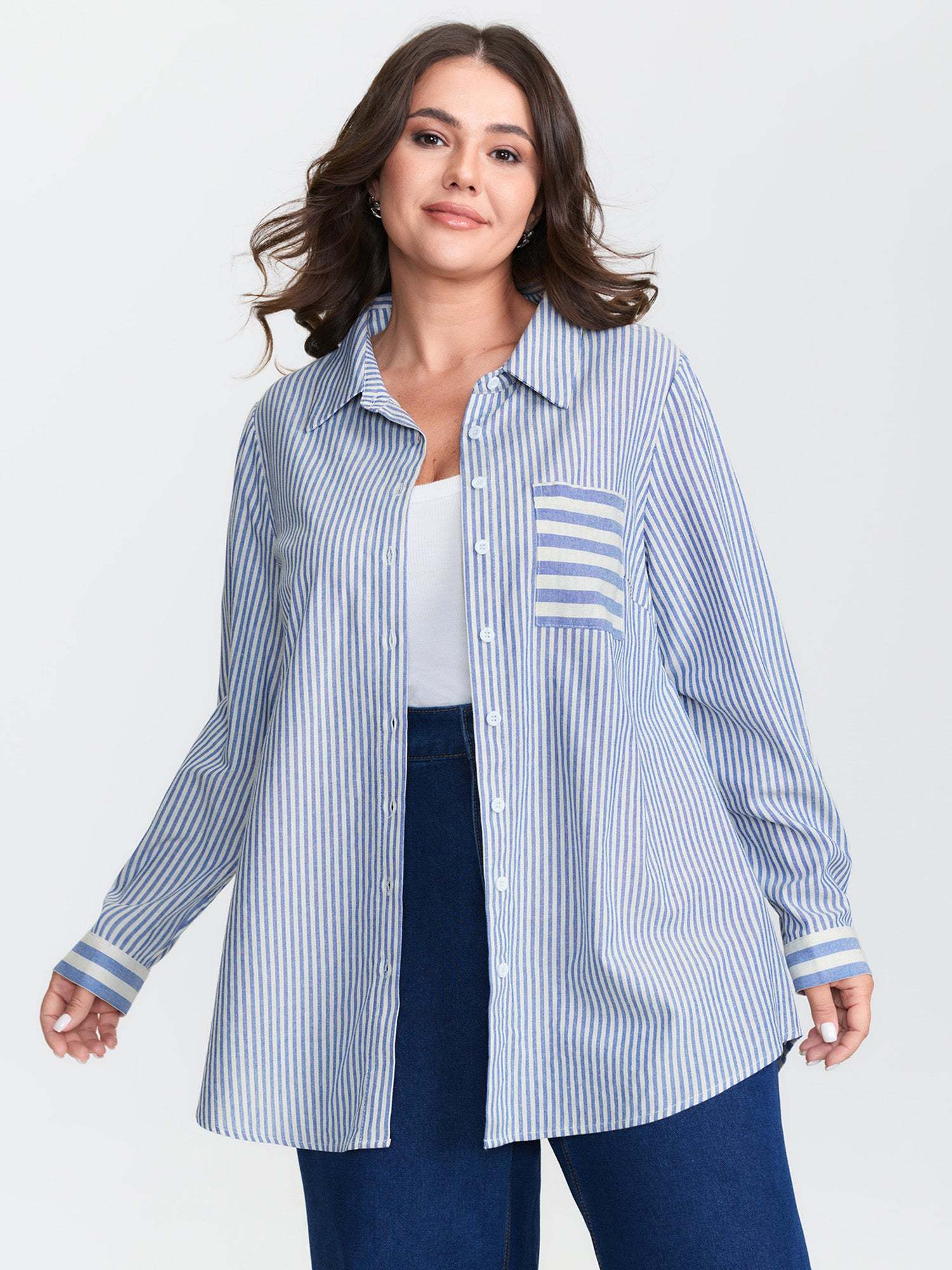 Shop Nautical Striped Pocket Button Down Shirt now and redefine your style with confidence at BloomChic. Tailored for mid and plus-size women. This trendy Tops Women, sizes 10-30. Color:Dark Blue;Style:Leisure;Prints:Stripes;Neckline:Shirt collar;Sleeve Type:Regular Sleeve;Details:Button, Contrast;Pocket:Patch pocket