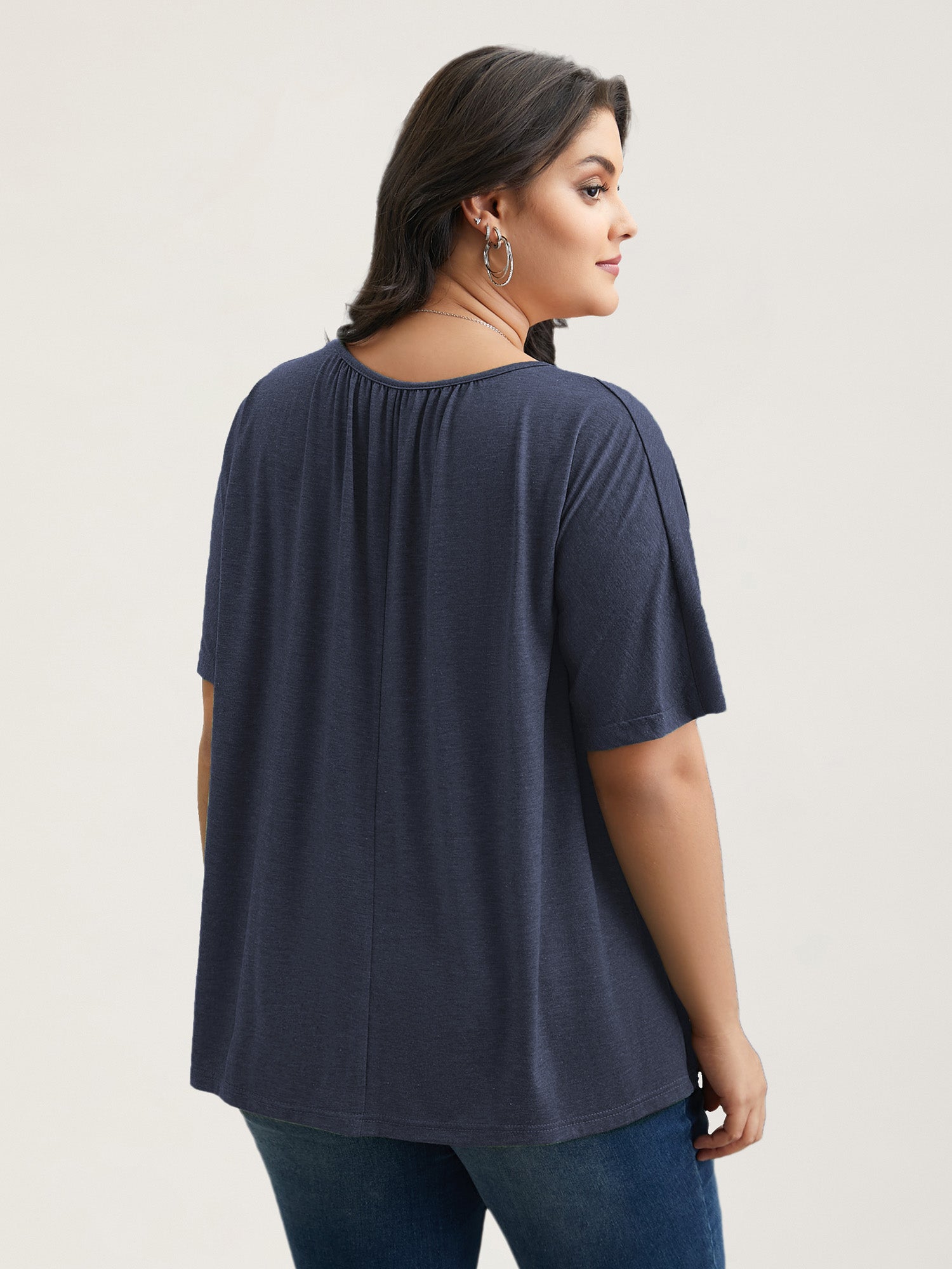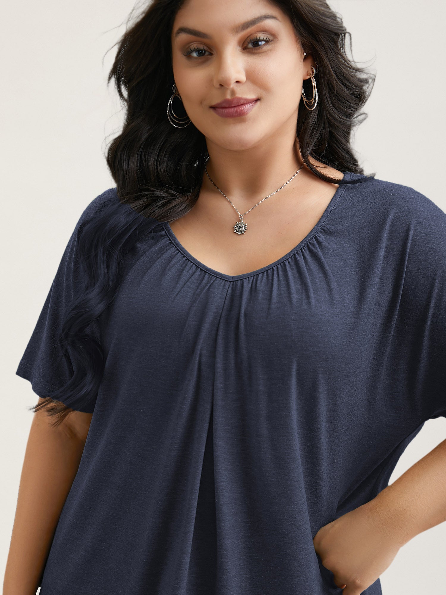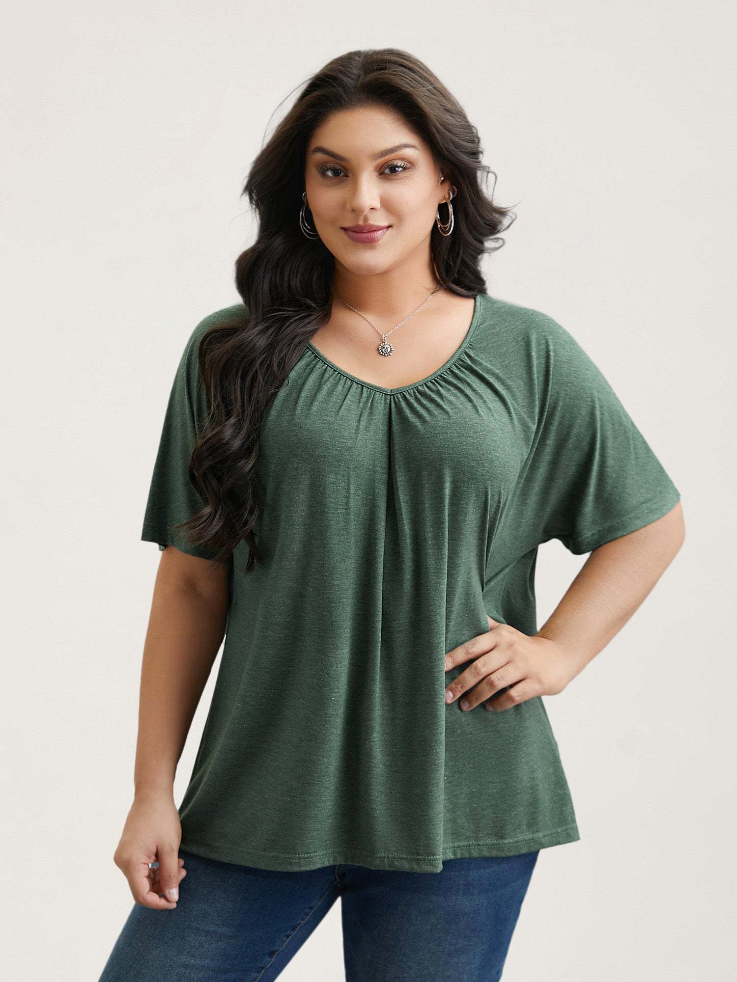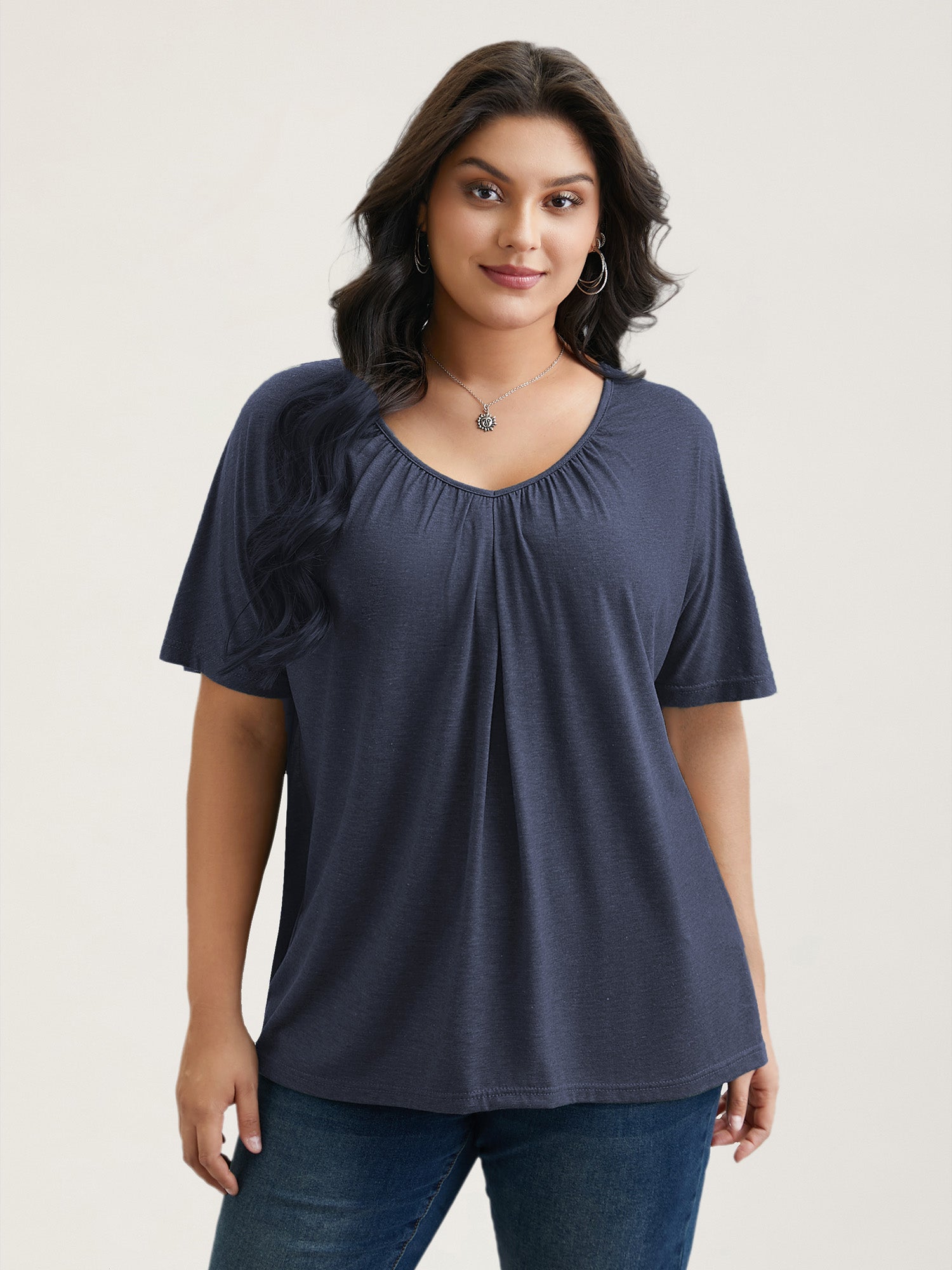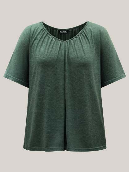 Pleated Plain Half-Sleeve Knit Top
