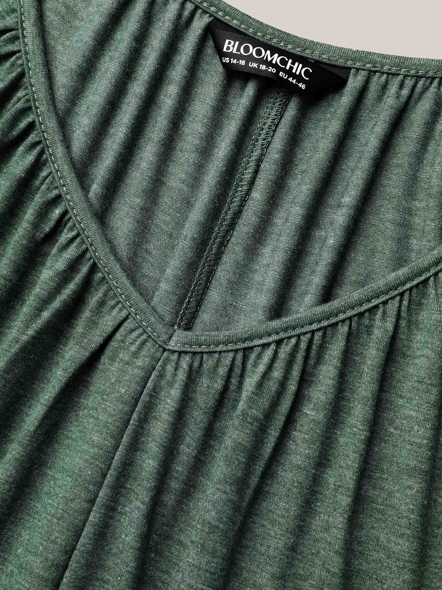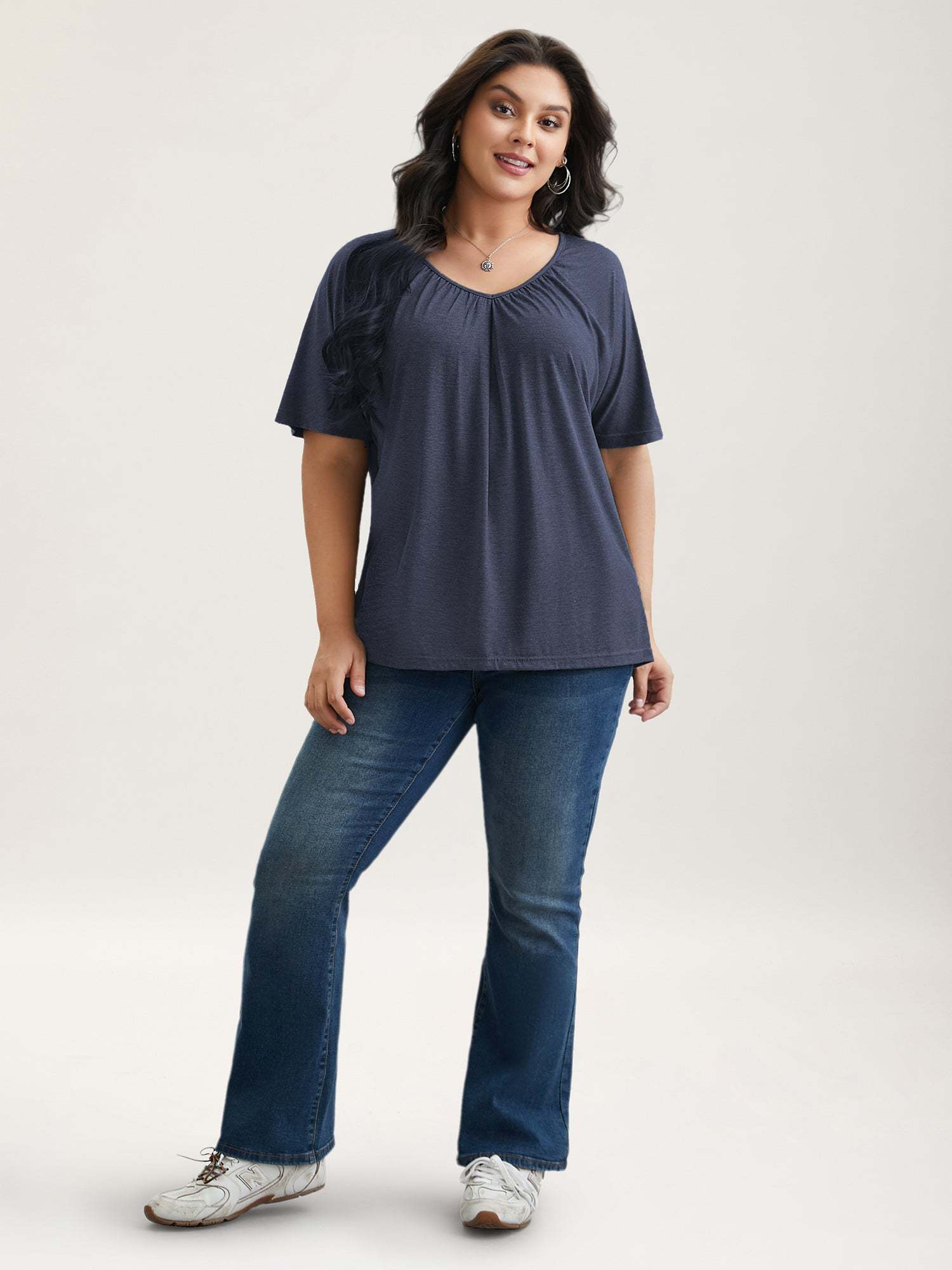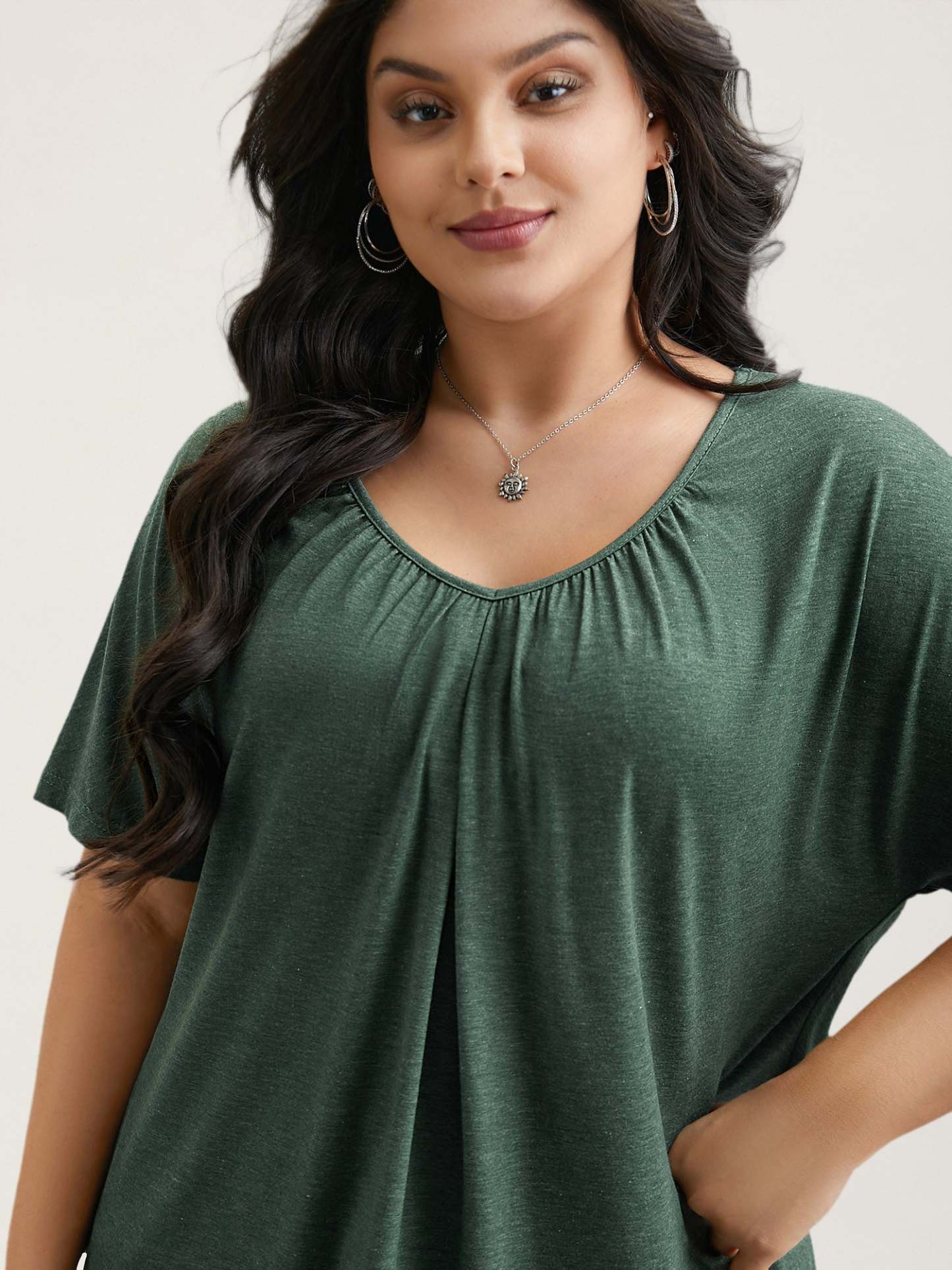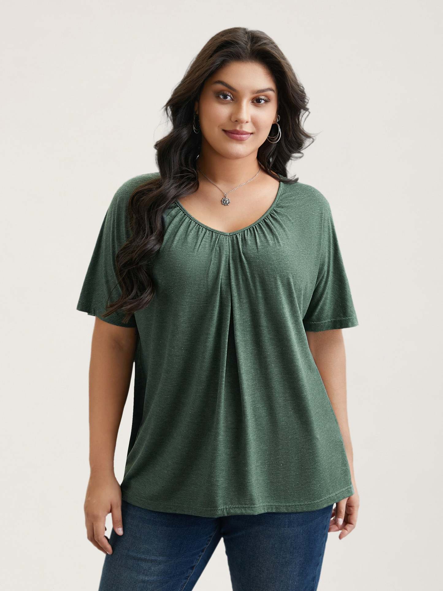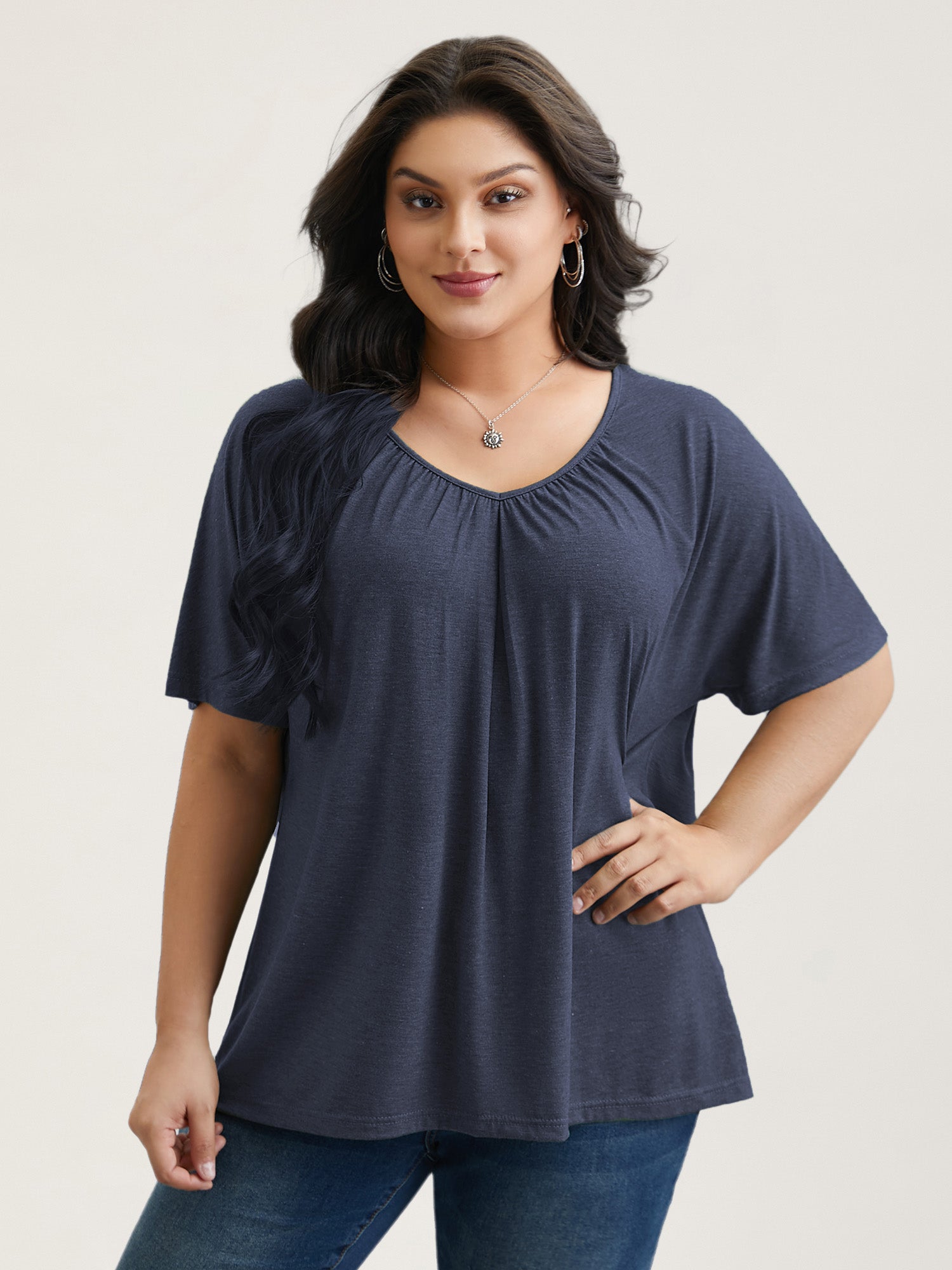 Pleated Plain Half-Sleeve Knit Top