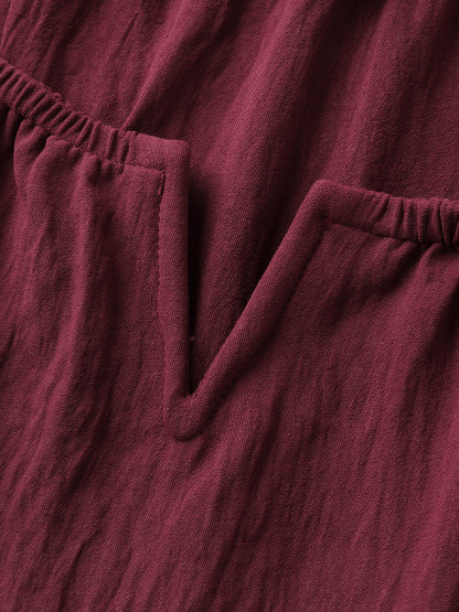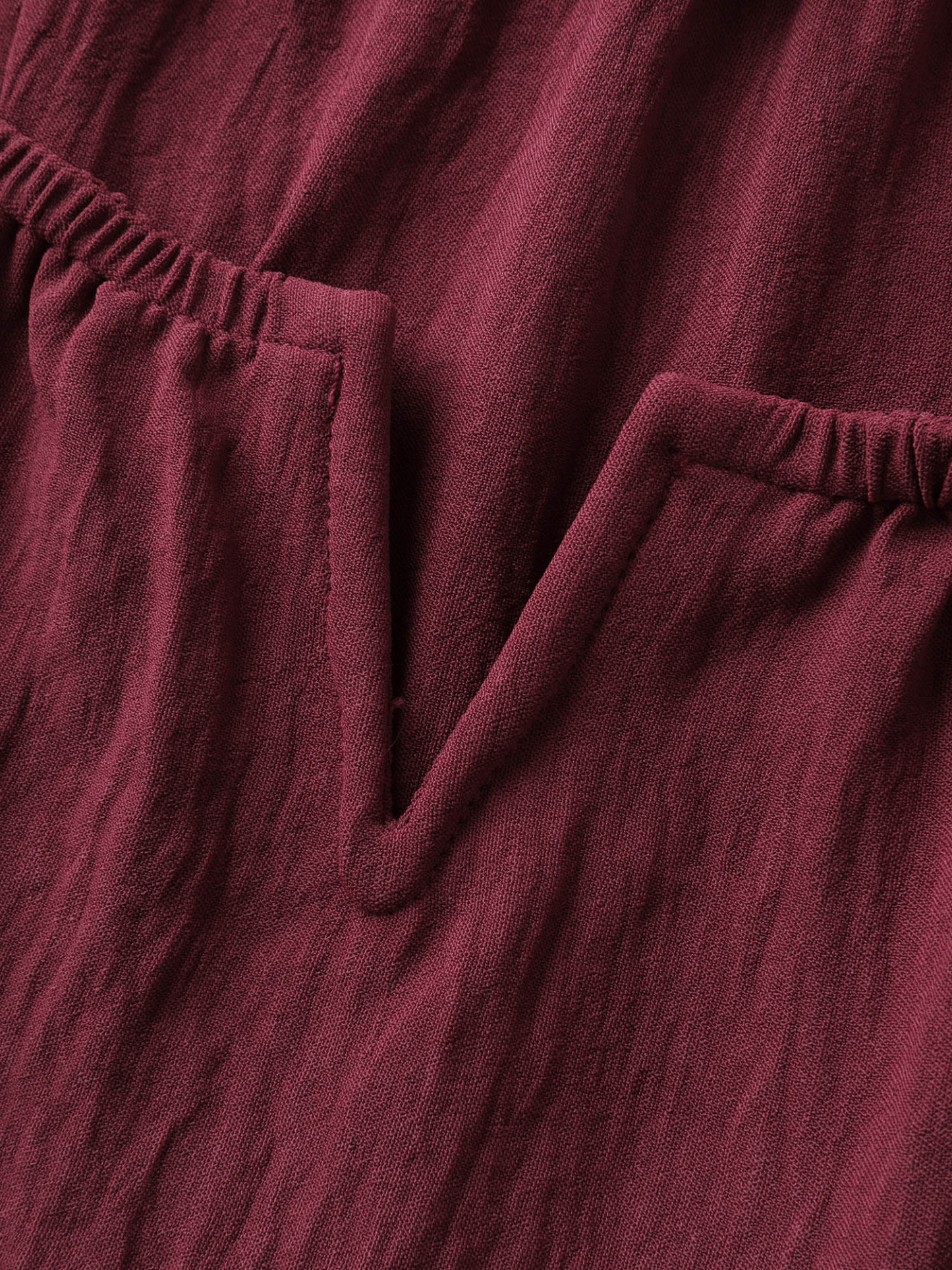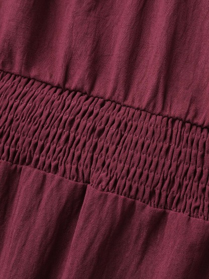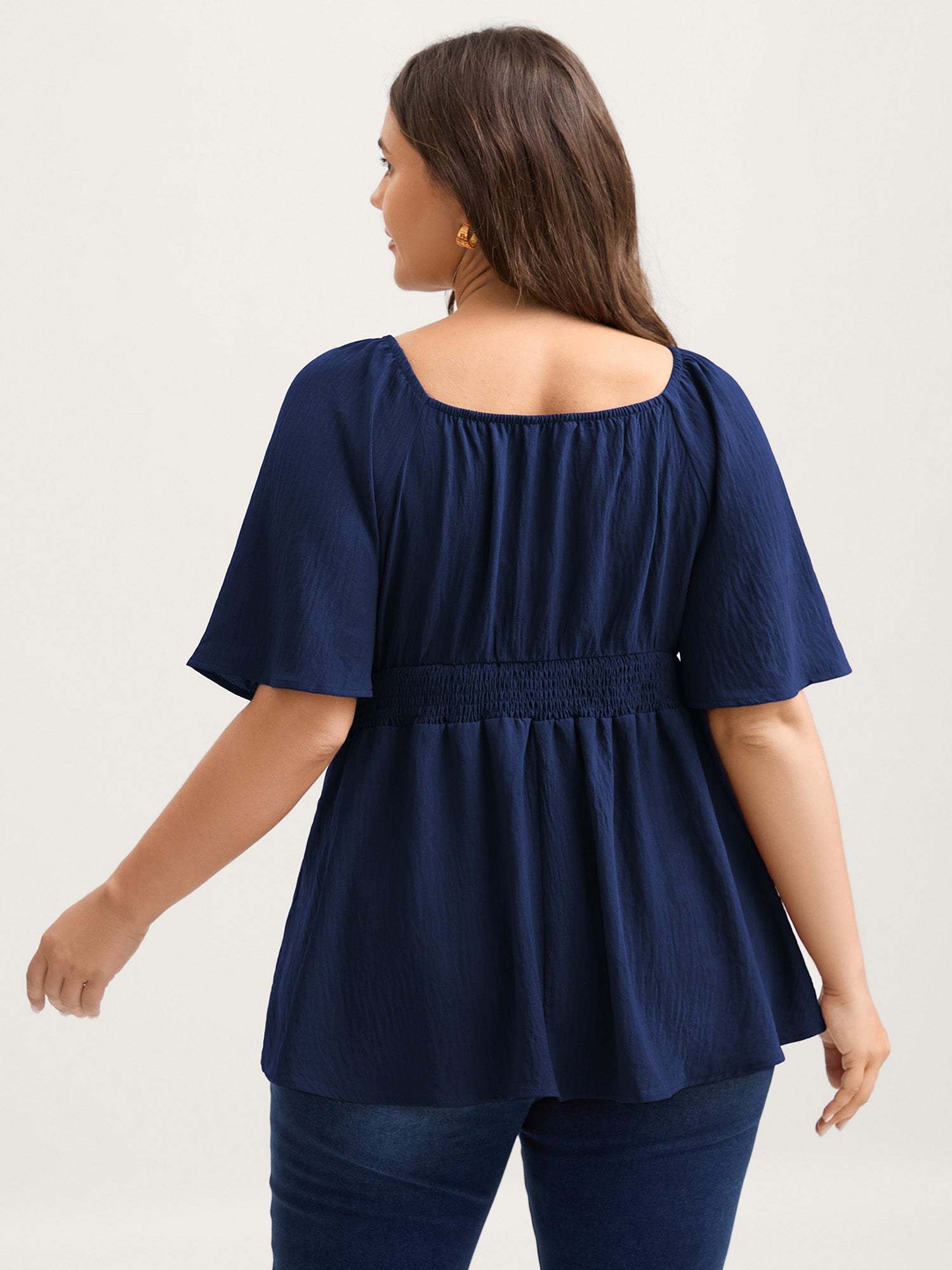 Stretchy Neckline Waist-Cinched Solid Blouse