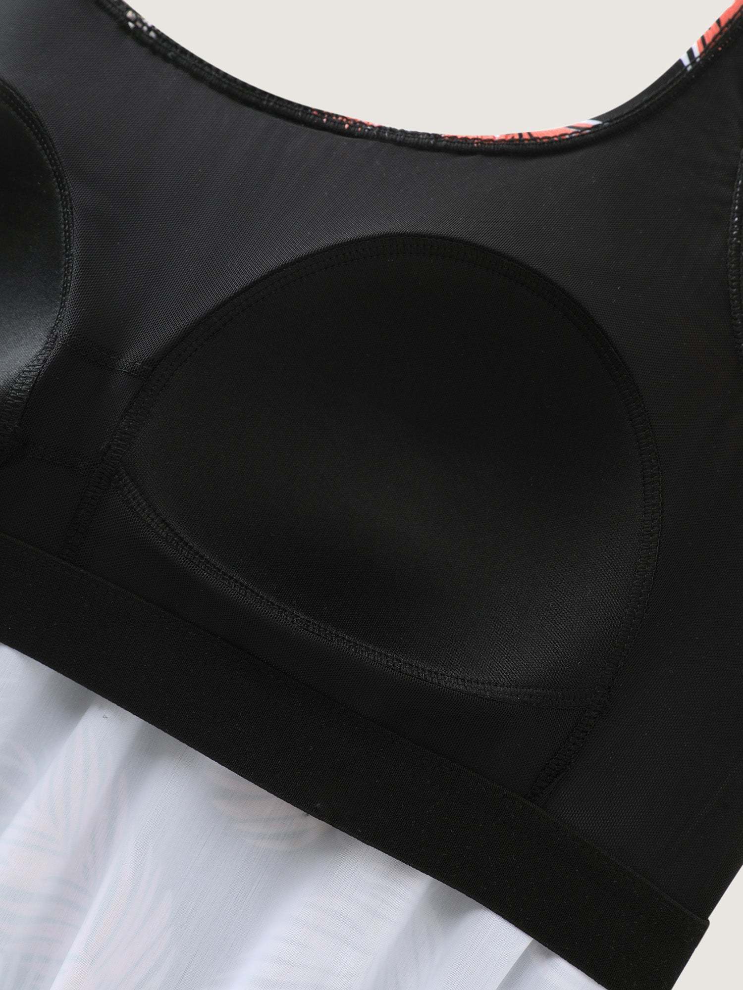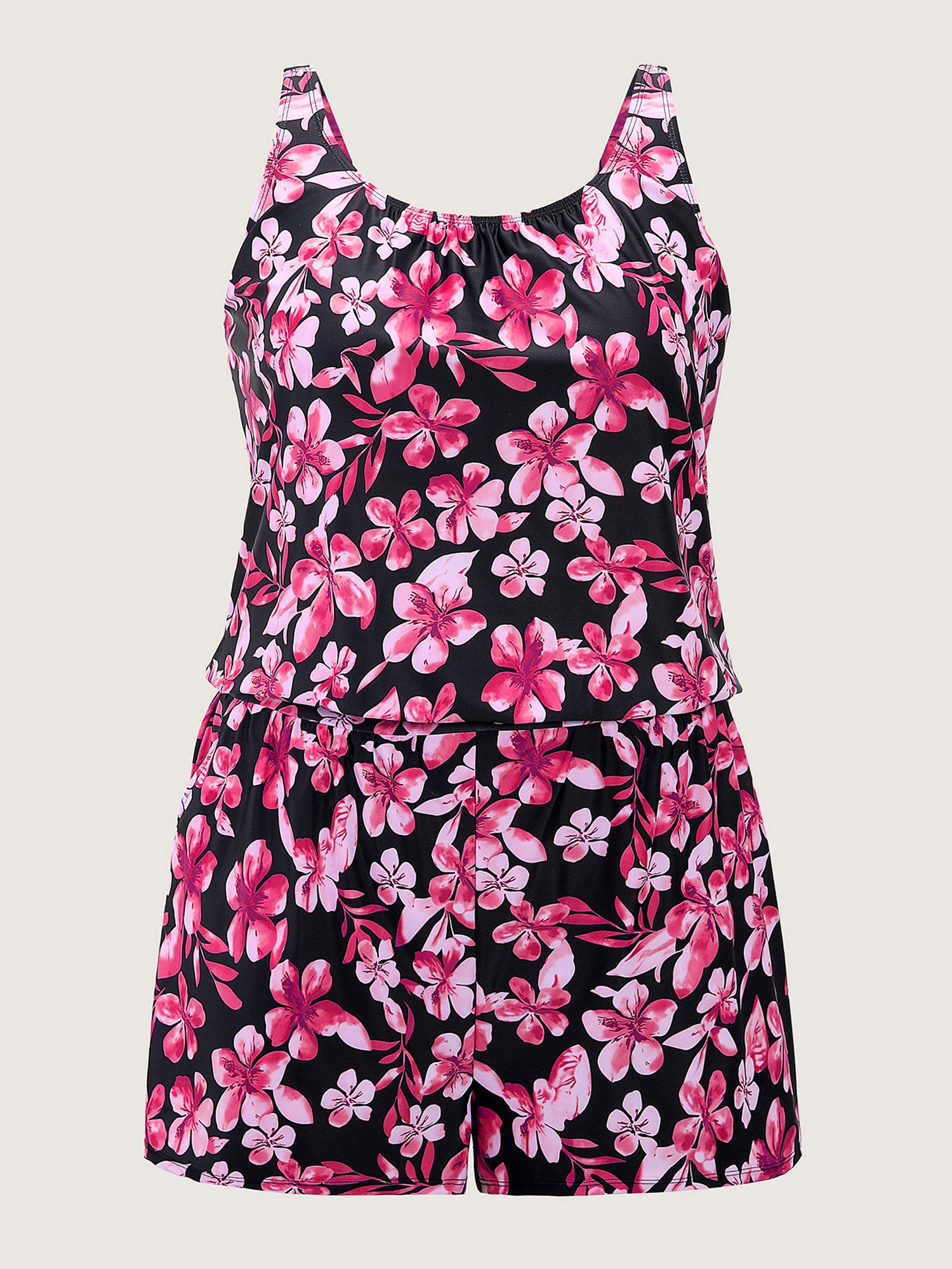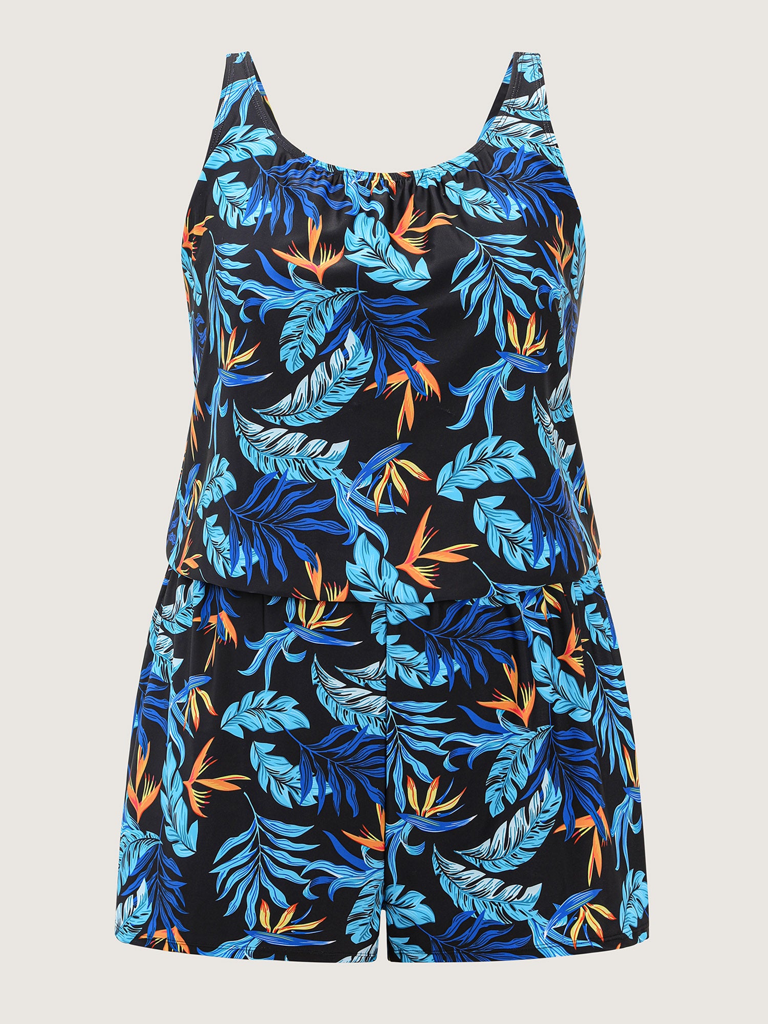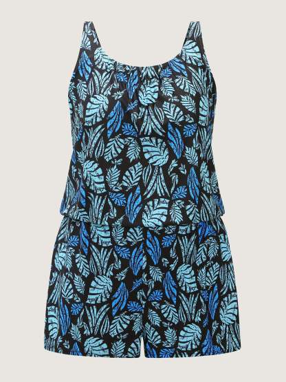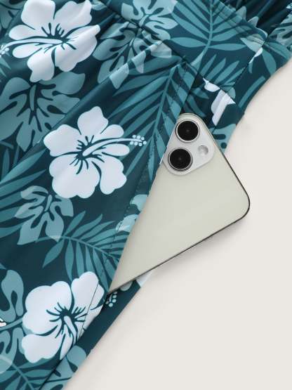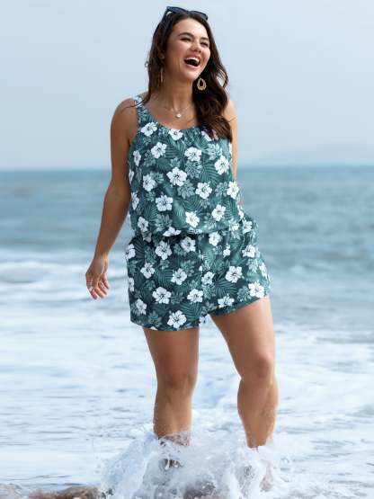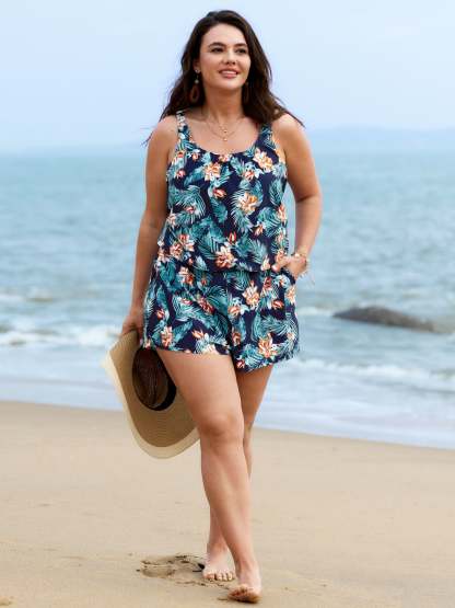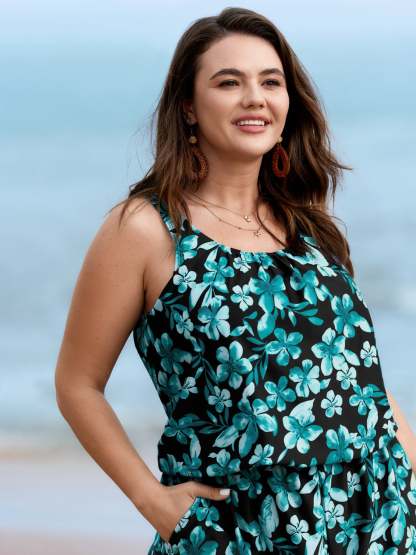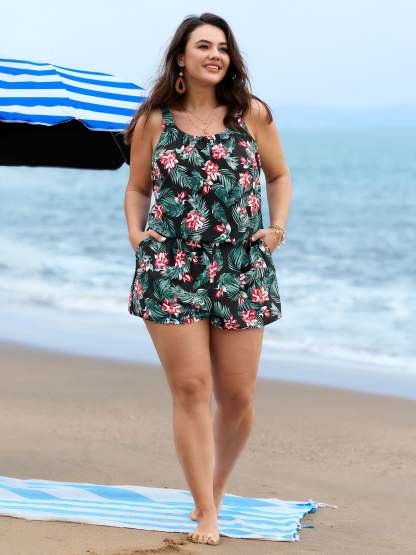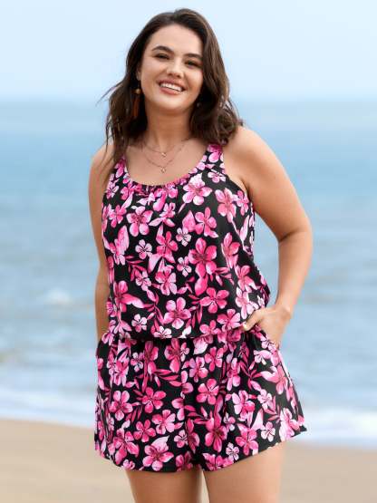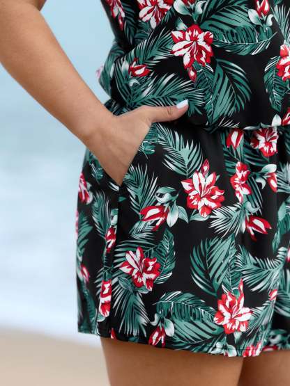 Tropical Flower Print Pockets One-Piece Swimsuit
