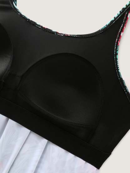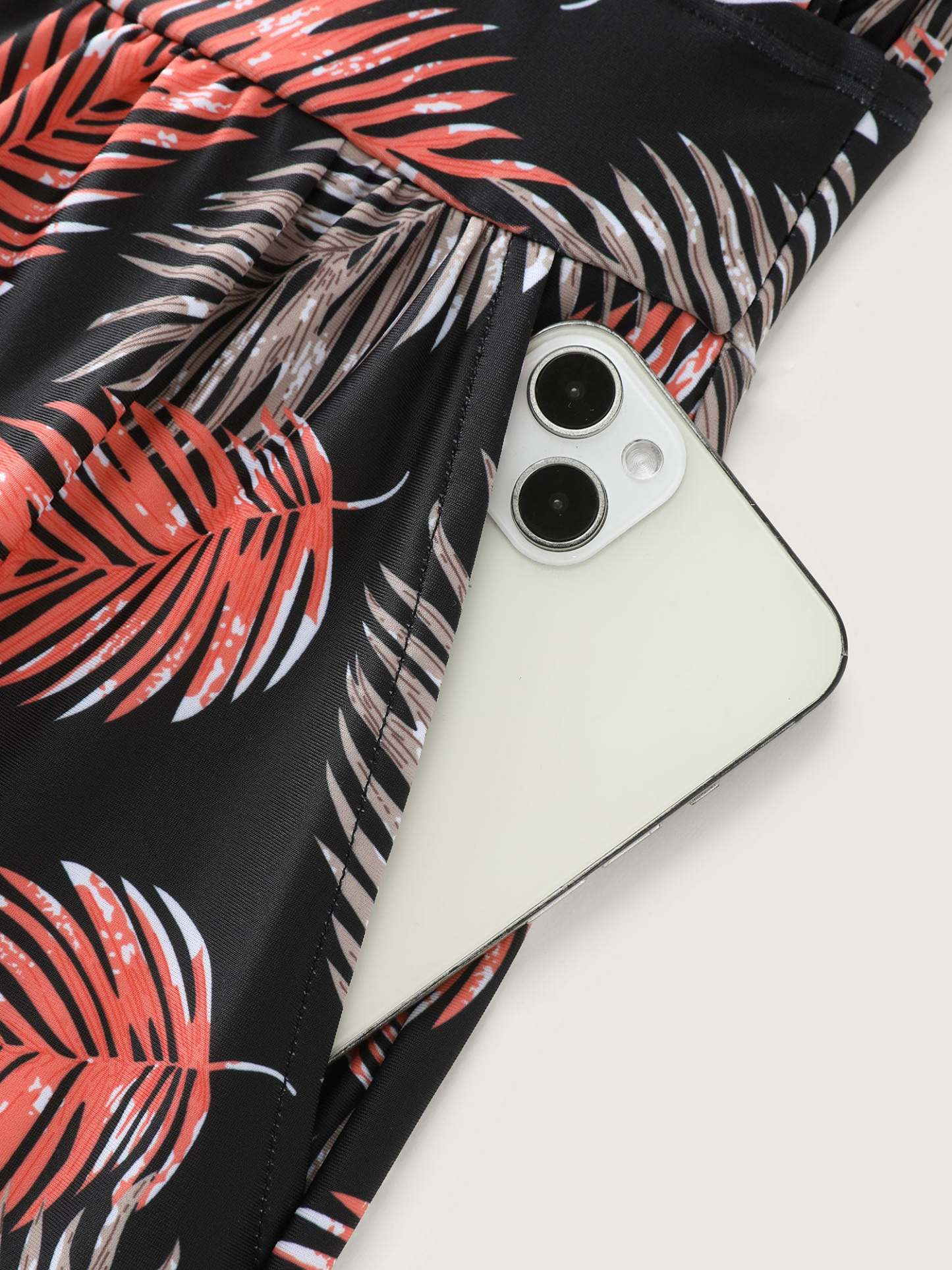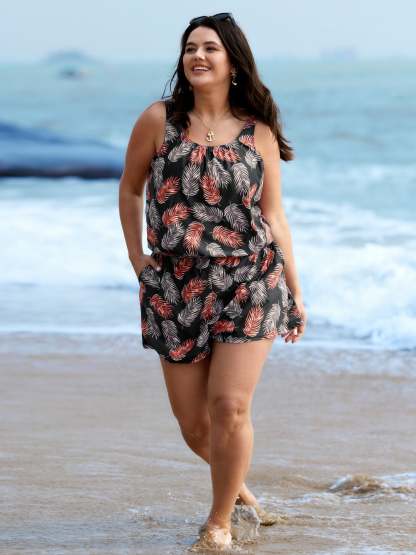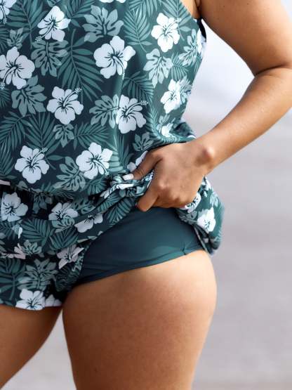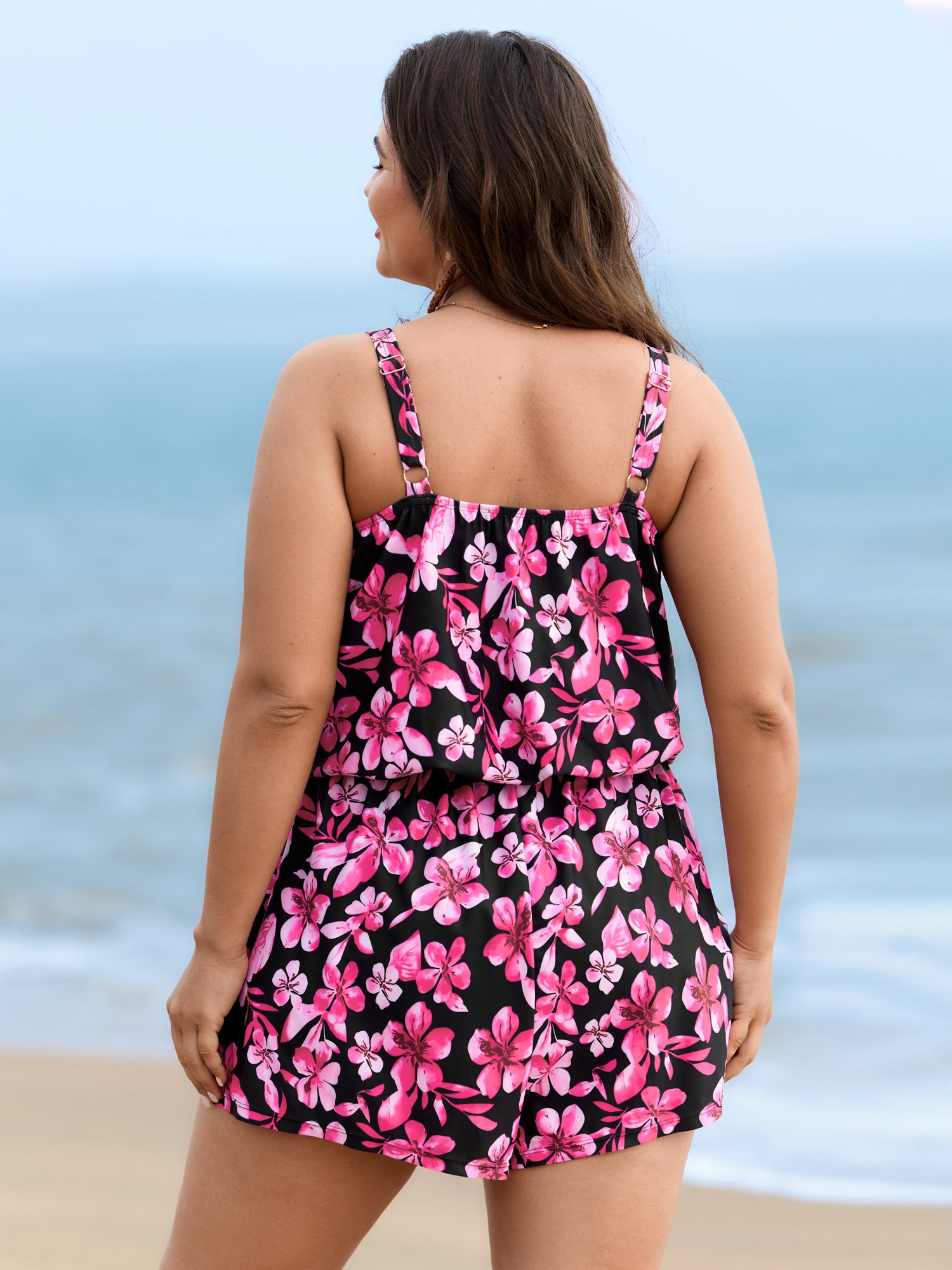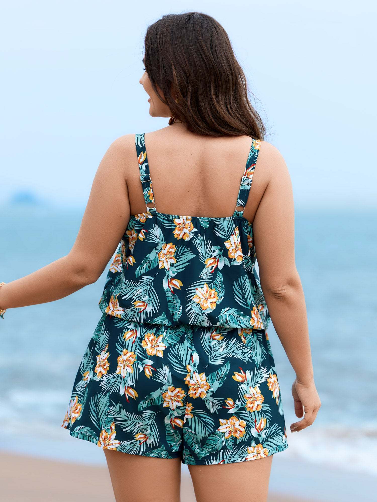 Tropical Flower Print Pockets One-Piece Swimsuit