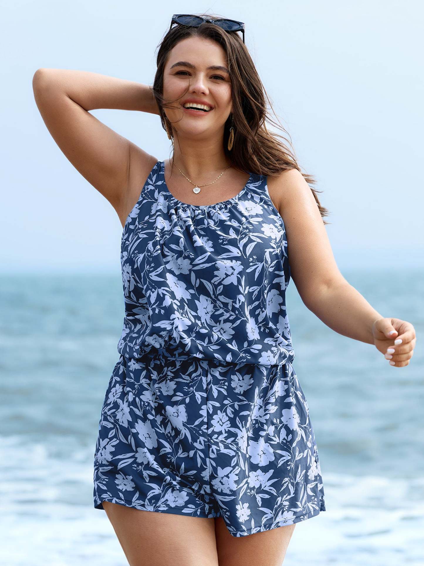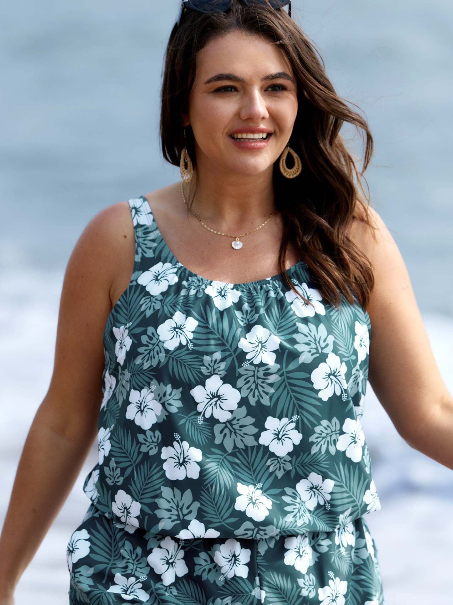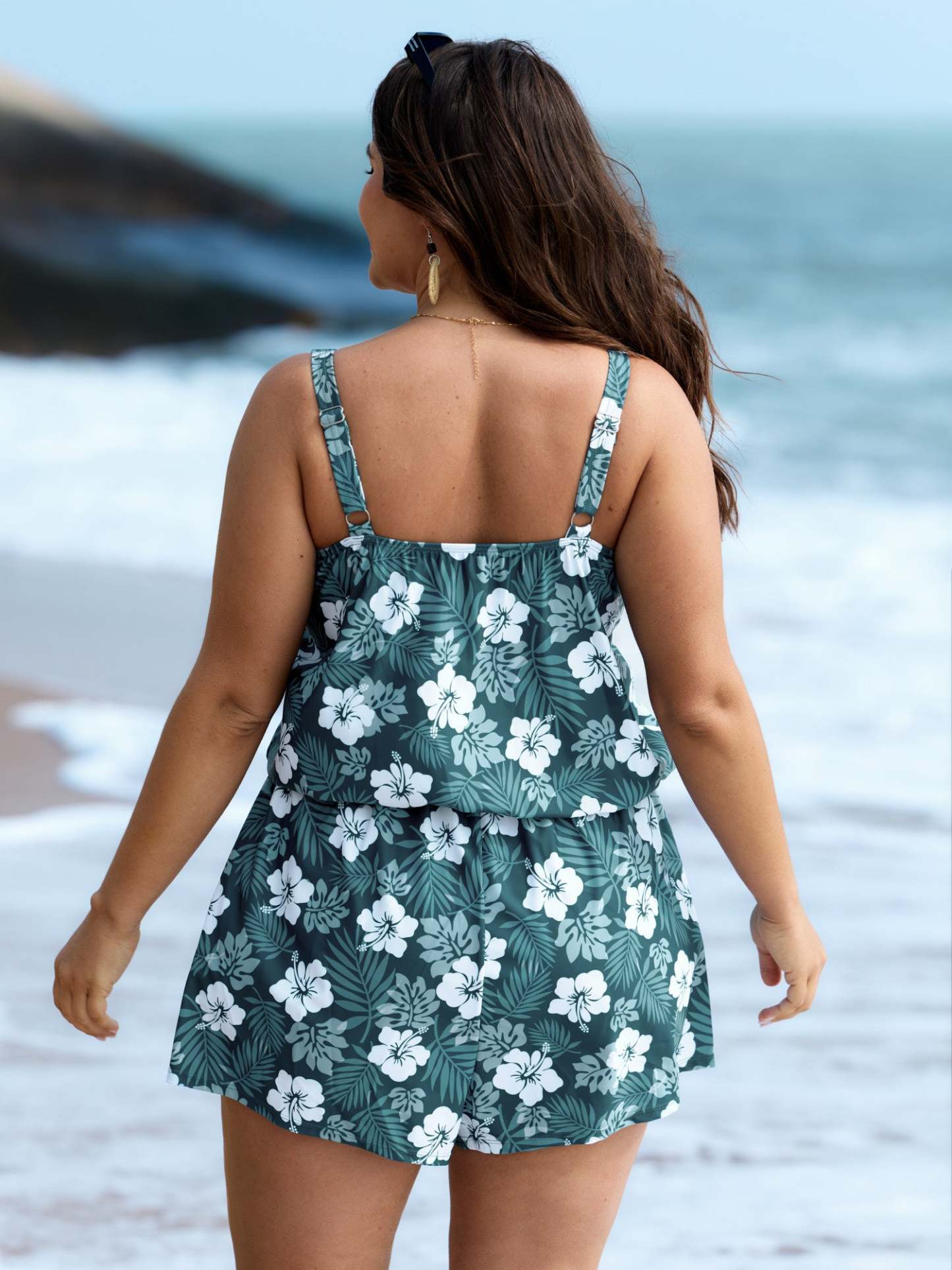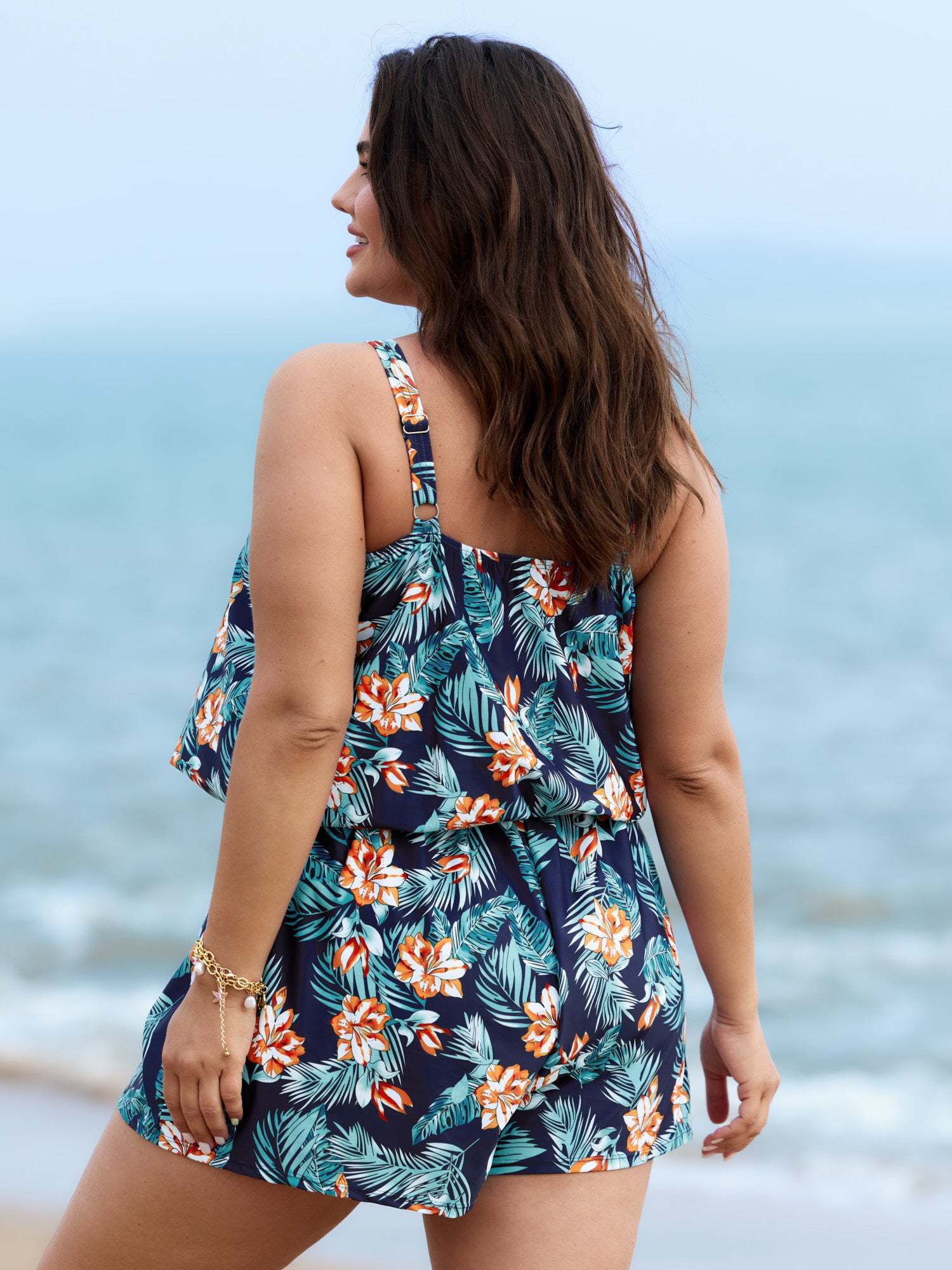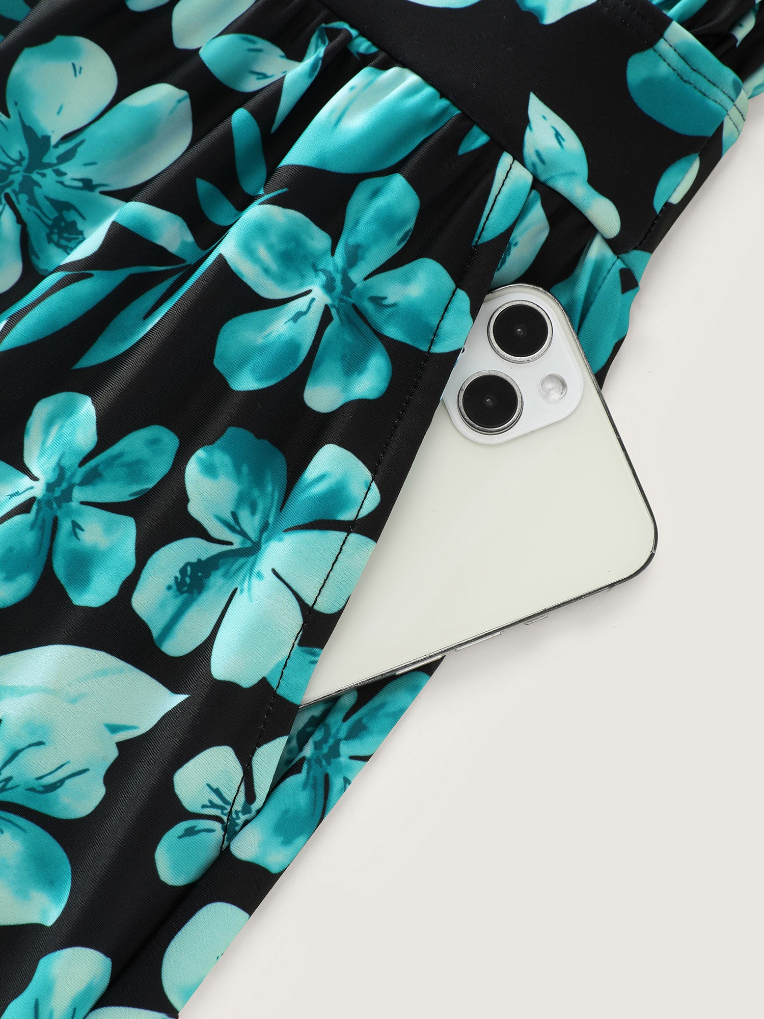 Tropical Flower Print Pockets One-Piece Swimsuit