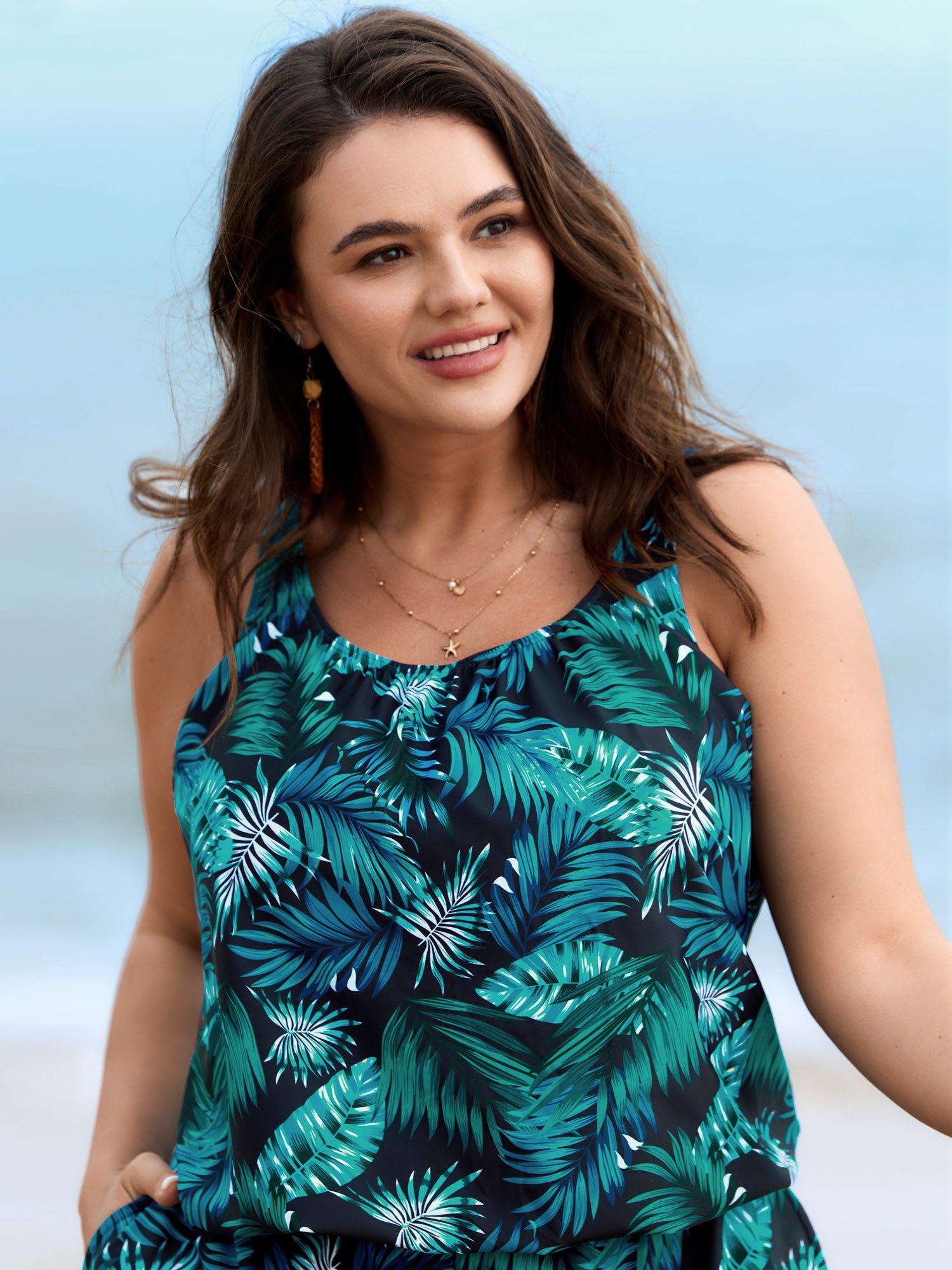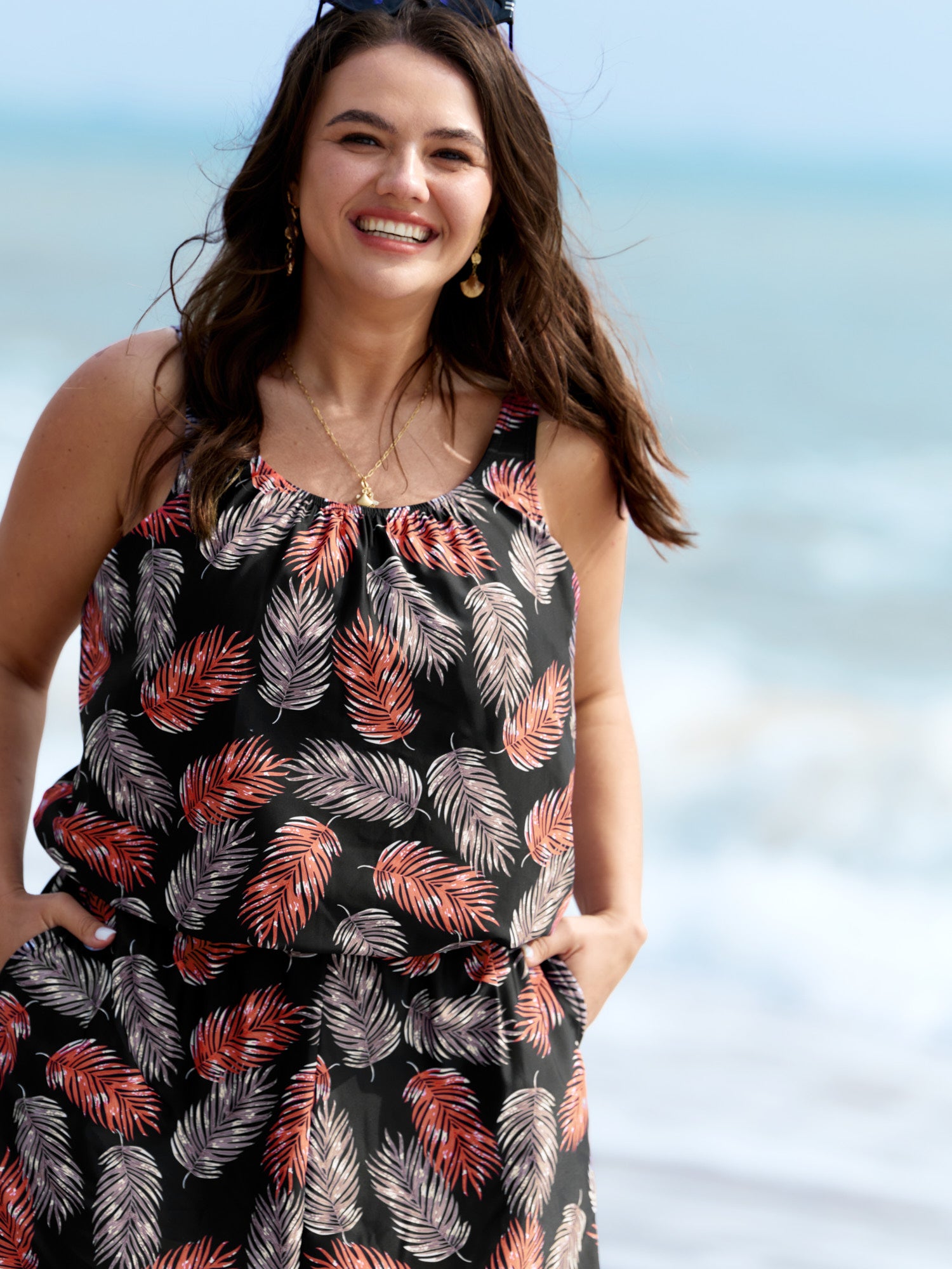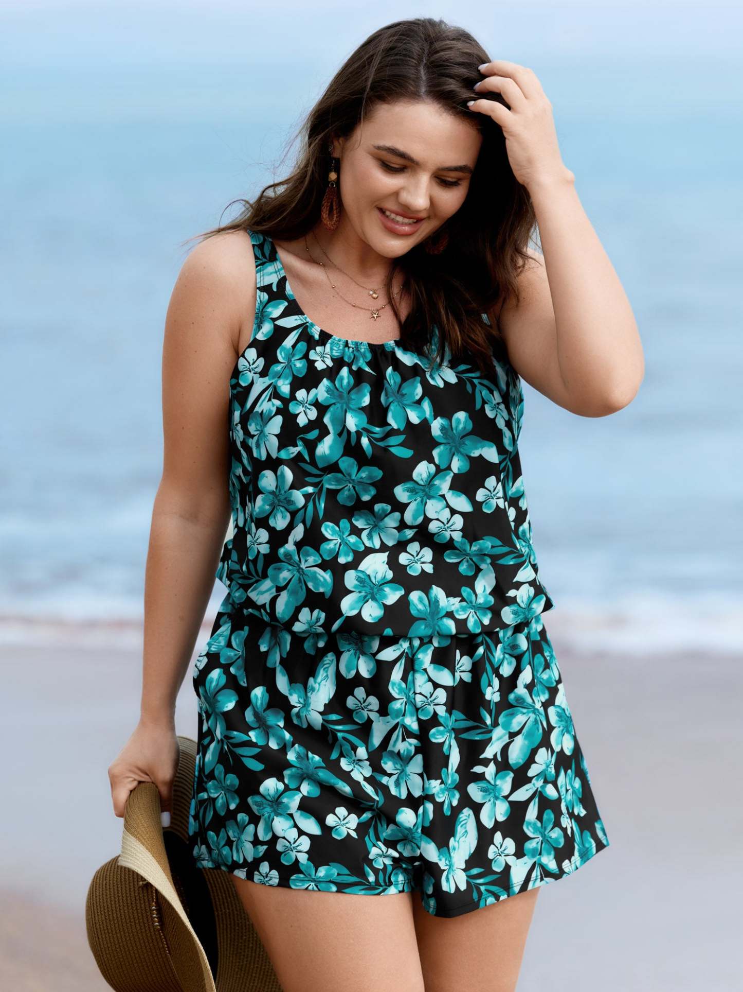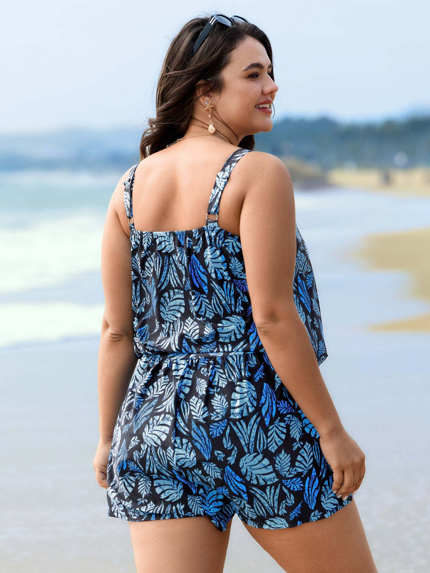 Tropical Flower Print Pockets One-Piece Swimsuit
