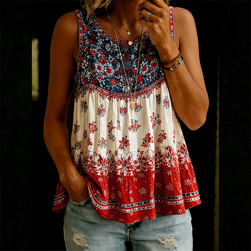 Women's American Flowers Printed Tank Top